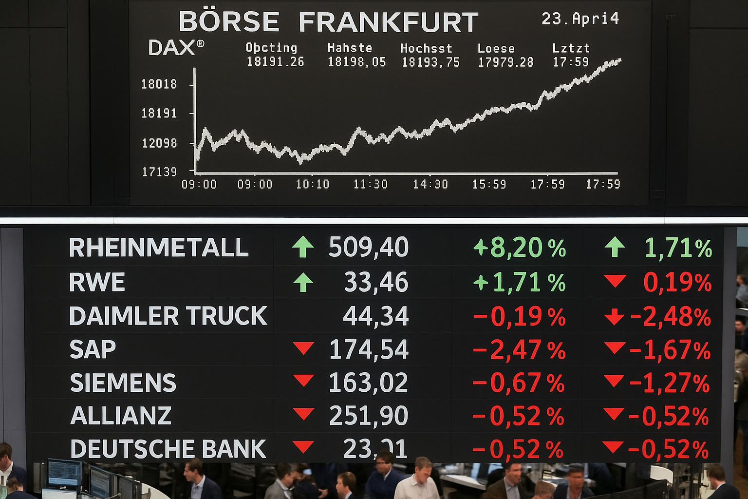 - Rheinmetall: +17,46% – Profitiert von der starken Nachfrage im Verteidigungssektor, ausgelöst durch geopolitische Unsicherheiten.