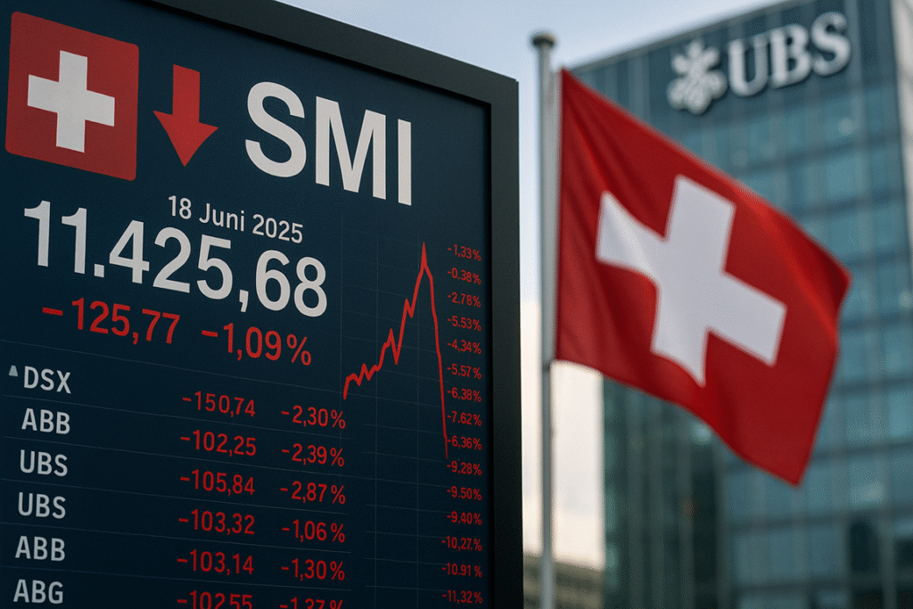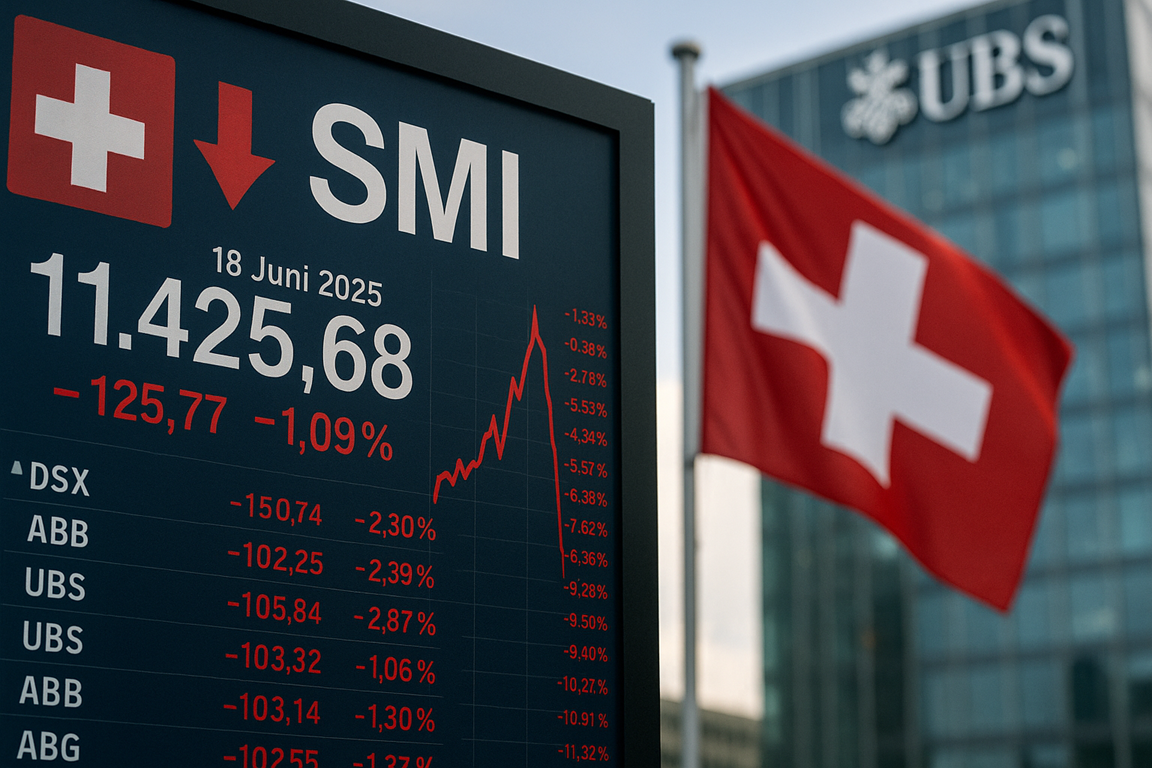 Der Swiss Market Index (SMI) notierte am 18. Juni 2025 deutlich im Minus. Die Unsicherheit über den geldpolitischen Kurs der SNB und die anhaltenden globalen Konjunktursorgen sorgen für Zurückhaltung. Besonders gefragt sind aktuell defensive Werte wie Nestlé, Novartis und Swisscom, während zyklische Branchen unter Druck stehen.